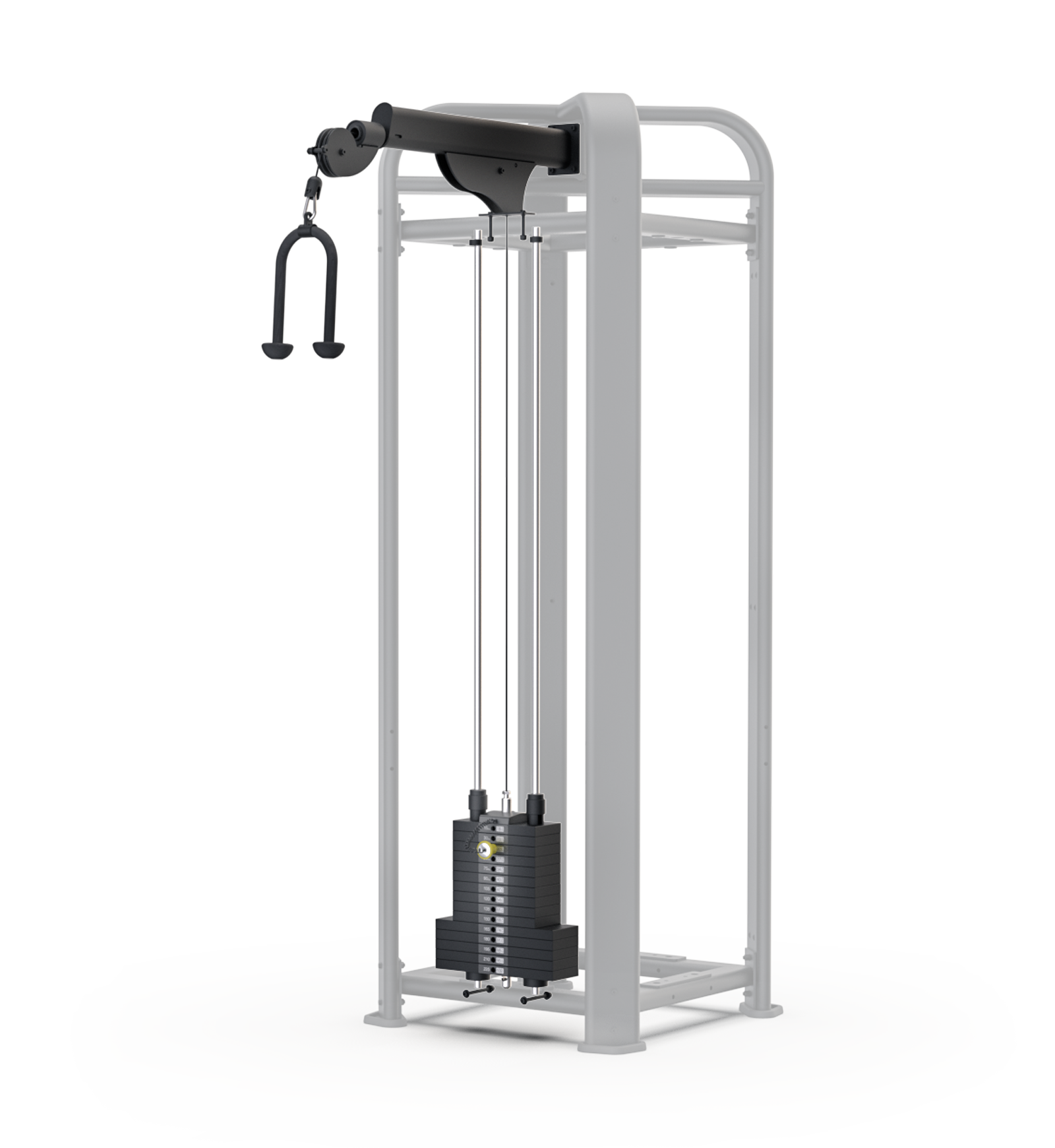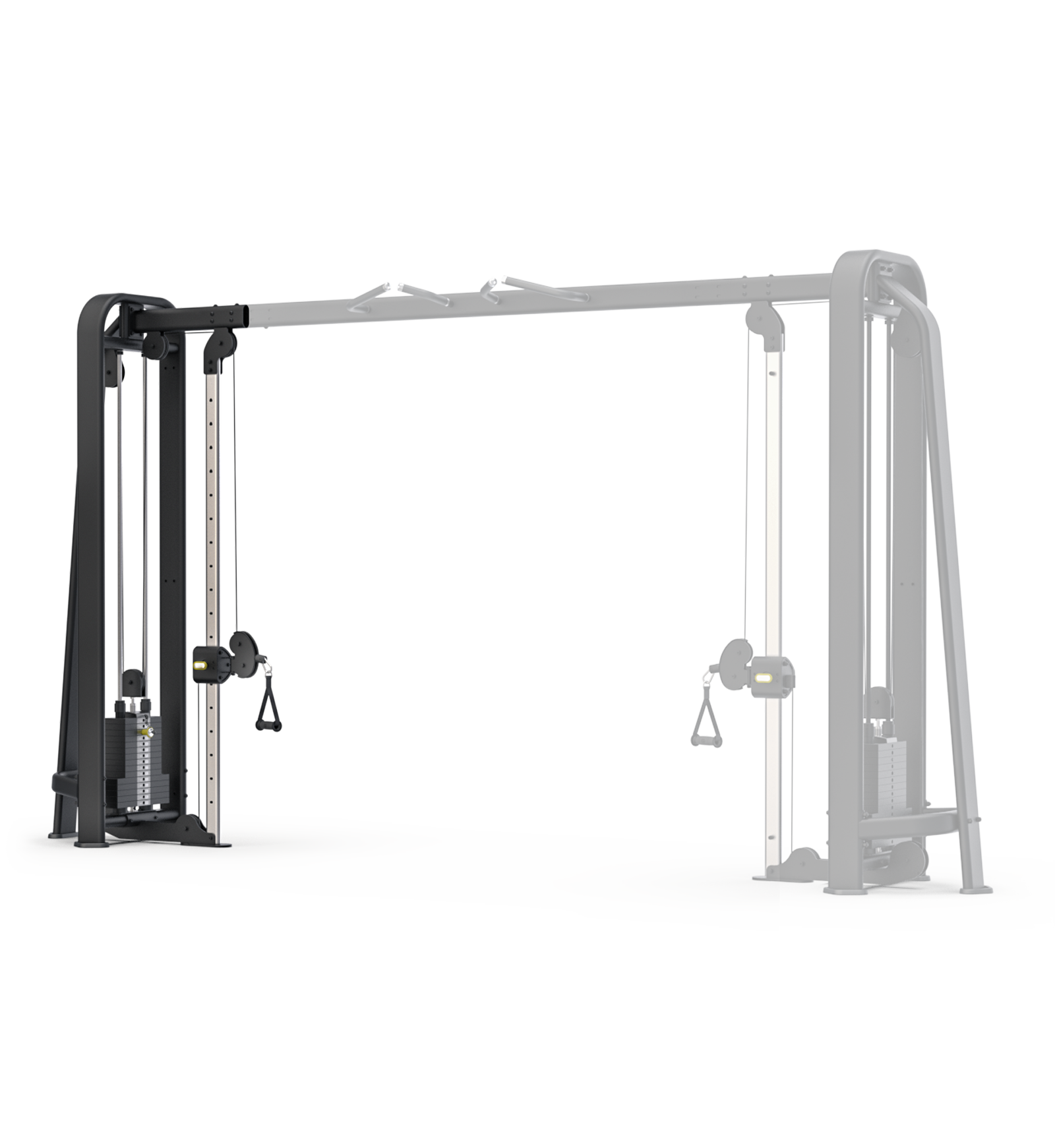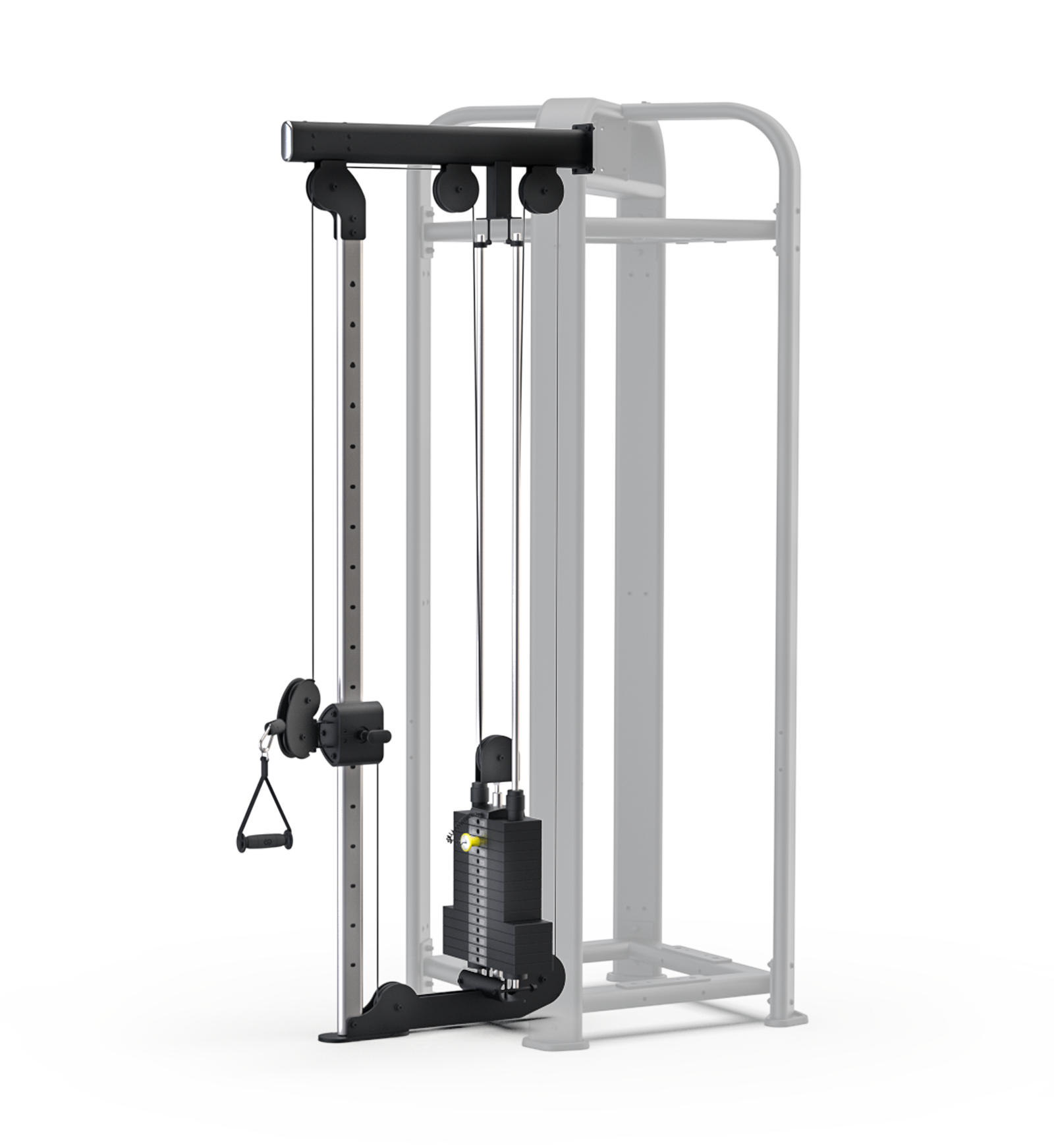 The Intenza Adjustable Pulley Station is crafted for seamless integration with the Crossbeam and additional cable stations, creating a multi—station setup. It features a 2:1 weight ratio and 18 pulley positions, offering an endless variety of exercise possibilities.