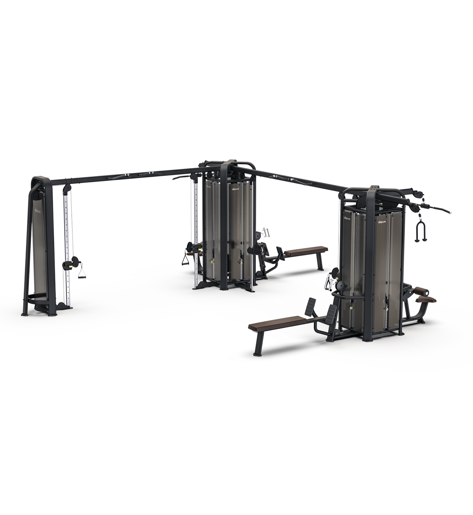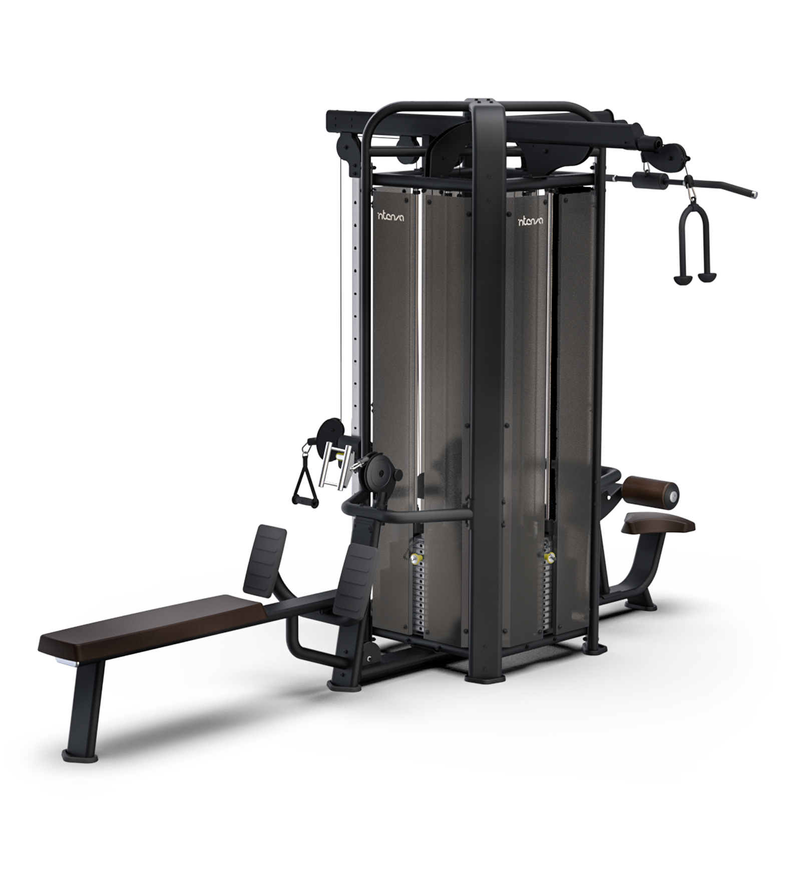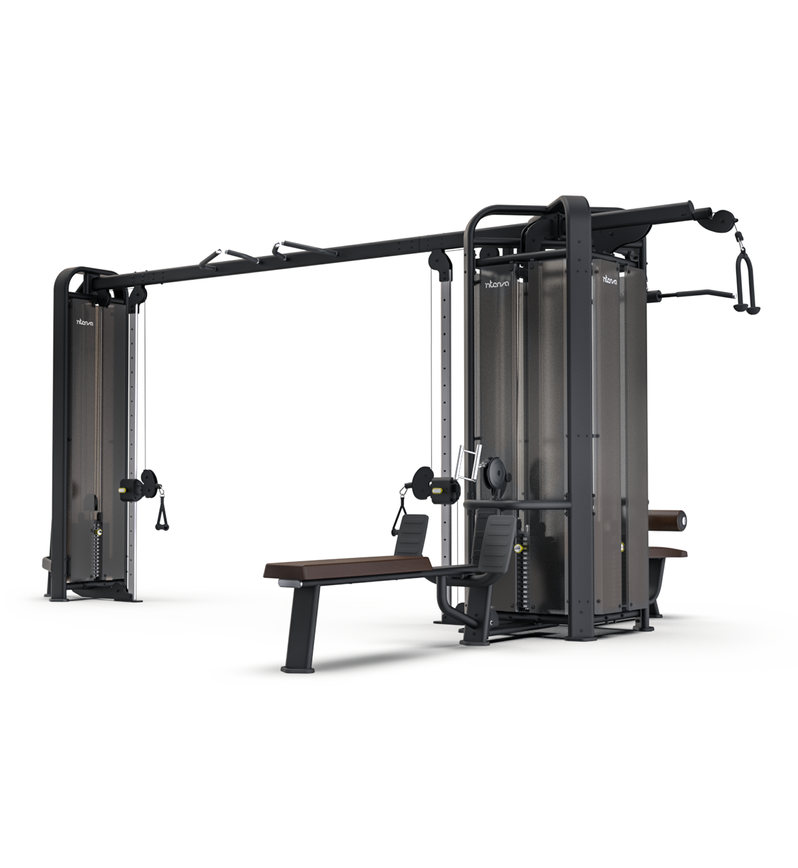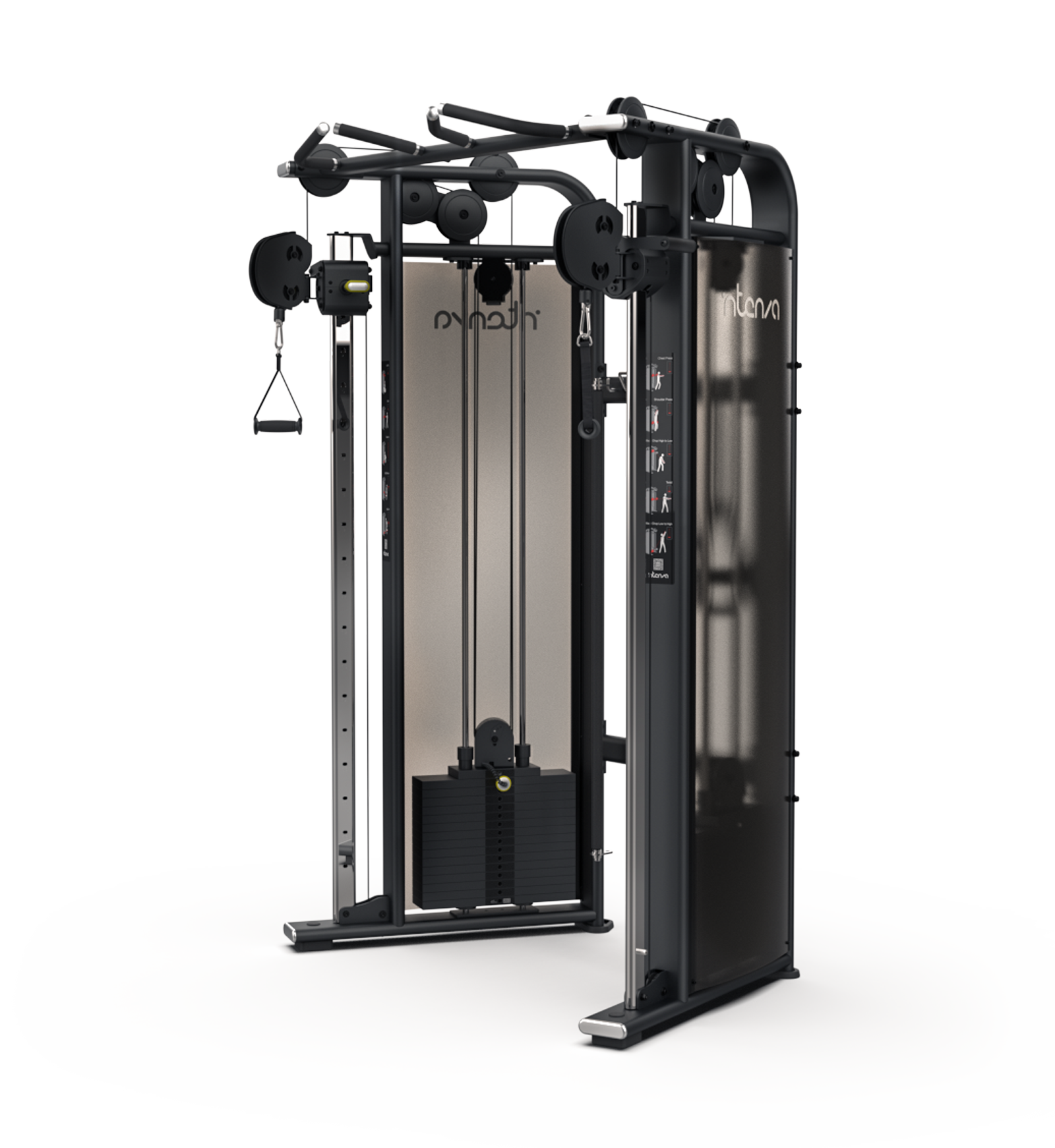 The Intenza Adjustable Pulley Station is crafted for seamless integration with the Crossbeam and additional cable stations, creating a multi—station setup. It features a 2:1 weight ratio and 18 pulley positions, offering an endless variety of exercise possibilities.